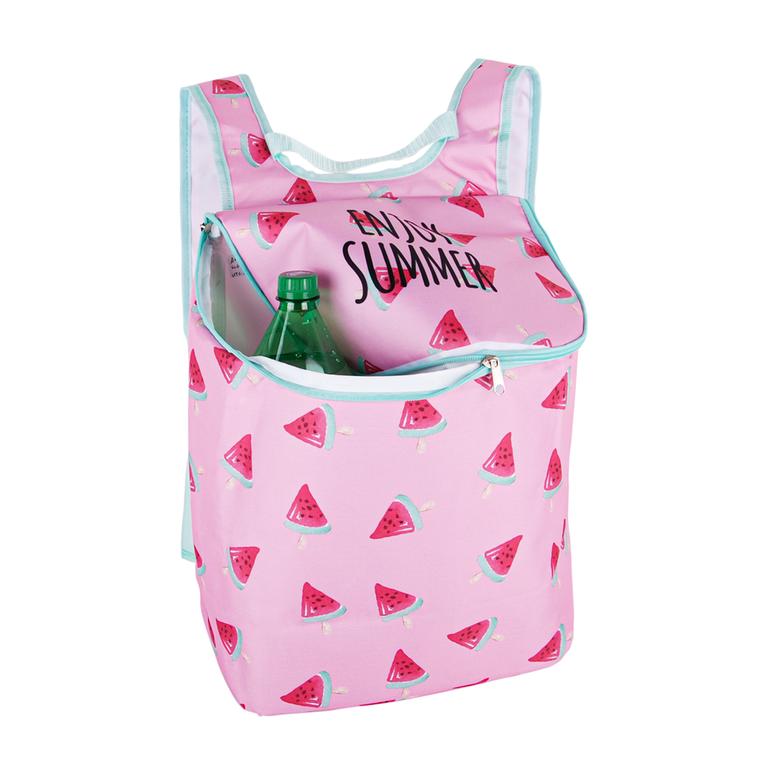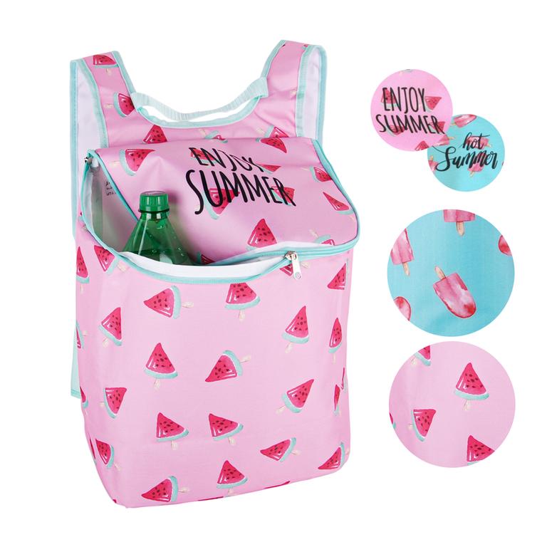 Praktický chladící batoh přes rameno, který díky vnitřní vrstvě z PE materiálu umožňuje skladovat oblíbené pokrmy i pití v letním horkém počasí. Skvělá záležitost pro letní pikniky, při procházce lesem nebo k vodě. Chladící batoh je na zip o objemu 20 l, v jemných pastelových barvách.