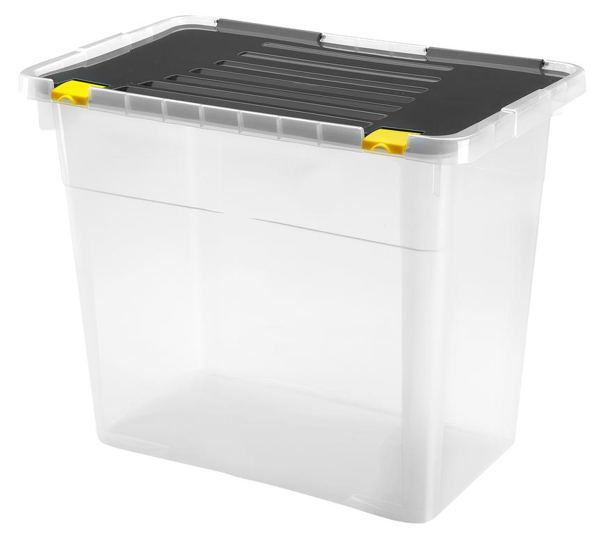Plastový průhledný box - 72 l se hodí do každé domácnosti, dílny či dětského pokoje. Snadno do něj uložíte mnoho předmětů, a díky své transparentnosti máte přehled o věcech v boxu. Uspořádaného uložení věcí dosáhnete díky možnosti skladovat jednotlivé boxy na sebe, rozměr 58 x 36,5 x 47,5 cm.