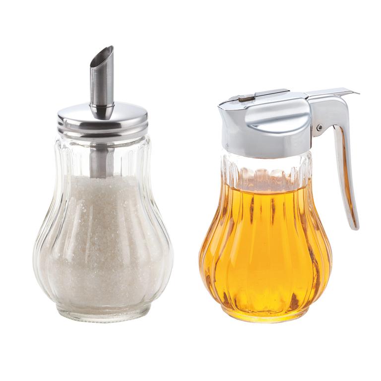 Mlékovka a cukřenka v provedení kombinace nerez - sklo patří ke stolování každé domácnosti. Už žádné nepraktické krabice s mlékem a cukr, který se všude sype. Objem 200 ml, rozměry - 6,7 x 9,8 cm.