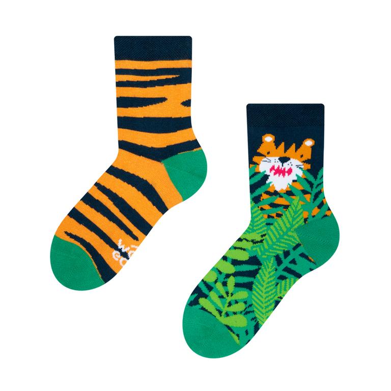 Dětské veselé ponožky DEDOLES tygr, velikost 27-30. S veselými ponožkami už nebudete při ranním oblékání bojovat. Ručíme jen za upřímnou zábavu. Navíc se můžete spolu s vaším prckem sladit. Mnohé z párů veselých ponožek máme v dospělé i dětské velikosti. Materiál: 78% bavlna, 20% polyamid a 2% elastan. Pohodlné nošení, ponožky perte v maximální teplotě 40°C, nedoporučuje se: sušení v bubnové sušičce, chemické čištění ani použití bělidla.