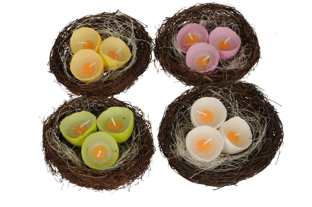 DEKORACE PTAČÍ HNÍZDO SE SVÍČKOU, 4KS, ASSORT