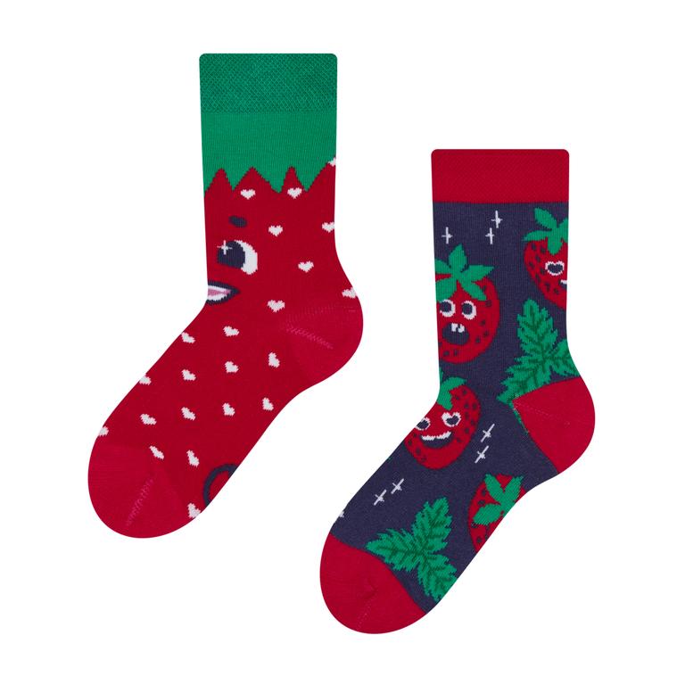 Dětské veselé ponožky DEDOLES šťastné jahody velikost 27-30. Sladké jahůdky jsou během letních dní tím nejlepším osvěžením. Naše veselé jahůdkové ponožky nerostou jen v určitou sezónu, takže ti budou zpříjemňovat celý rok. Rozdávej dobrou náladu s veselými ponožkami. Díky jedinečnému hravému designu vyjádři své pravé veselé já. Kvalitní bavlna zase zabezpečí dokonalé pohodlí pro tvoje nohy. Vykouzli sobě a svým blízkým úsměv na tváři. Materiál: 70 % bavlna, 28 % polyamid a 2 % elastan. Pohodlné nošení, ponožky perte při maximální teplotě 40 °C, nedoporučuje se: sušení v bubnové sušičce, chemické čištění ani použití bělidla.