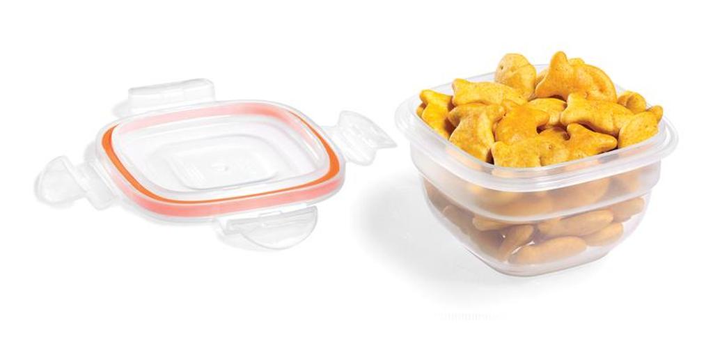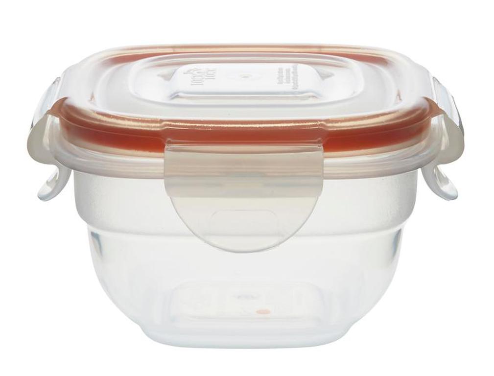 Dózy Lock & Lock "Easy Match" čtvercové jsou bezpečné a funkční nádoby vyrobené z kvalitního plastu, který je trvanlivý a odolává vysokým teplotám. Tyto dózy jsou 100% vzduchotěsné a tím zajišťují dlouhodobou čerstvost uchovávaných potravin a jsou vynikající také z hlediska uchování vůně (aroma). Čtyři pohyblivé "klipy" zajišťující víko jsou odolné proti opotřebení. Nádoby mají speciálně upravené vnější dno tak, aby se mohly bezpečně stavět na sebe a neklouzaly. Dózy Lock & Lock lze použít v chladničce, v mikrovlnce, v mrazáku i v myčce na nádobí. Dózy Lock & Lock prošly přísnými hygienickými zkouškami a odpovídají nejpřísnějším předpisům. Objem 100 ml. Barva čirá, oranžová.