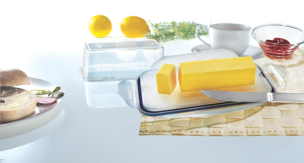 Čtyři pohyblivé "klipy" zajišťující víko jsou odolné proti opotřebení. Nádoby mají speciálně upravené vnější dno tak, aby se mohly bezpečně stavět na sebe a neklouzaly.