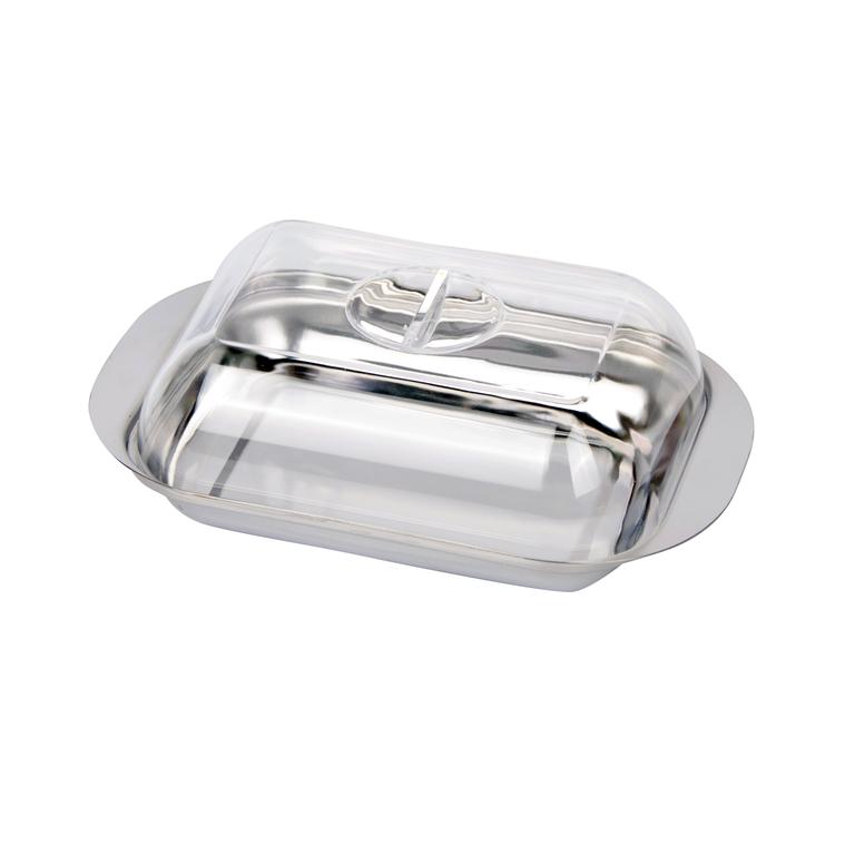 Máslenka je vyrobená z nerezové misky a plastového víka-k uchování másla v hygienickém prostředí v lednici. Je velmi praktická při každodenním používání. Materiál - nerez, plast. Rozměry - 17,5 x 11 x 4,5 cm.