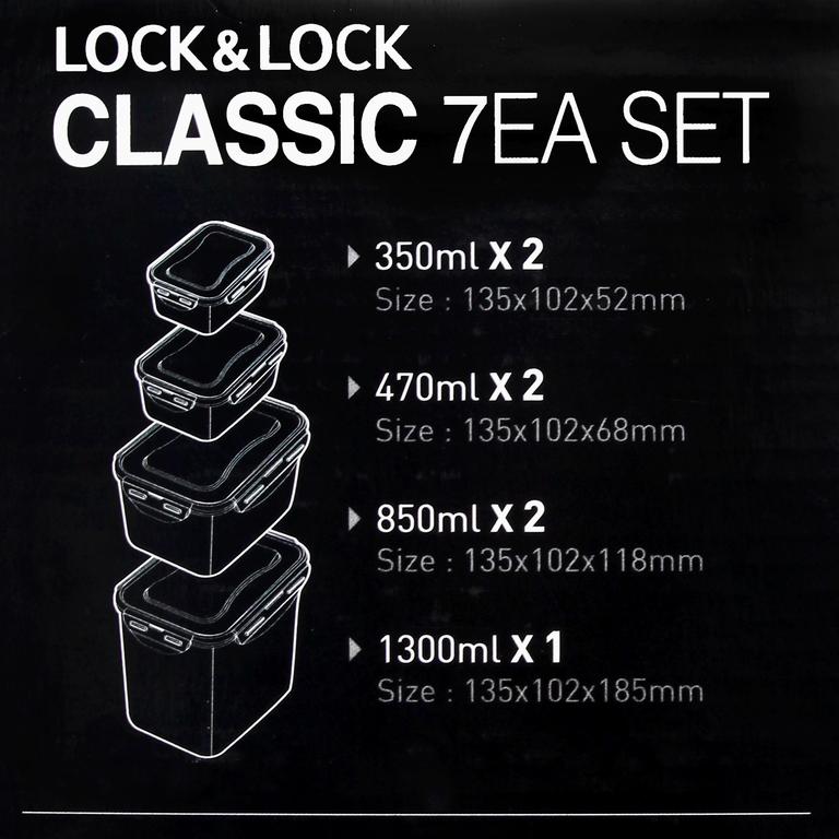 Sada 7 dóz lock s patentními víky. Dózy lock jsou bezpečné a funkční nádoby vyrobené z kvalitního plastu, který je trvanlivý a odolává vysokým teplotám. Tyto dózy jsou 100% vzduchotěsné a tím zajišťují dlouhodobou čerstvost uchovávaných potravin. Čtyři pohyblivé "klipy" zajišťující víko jsou odolné proti opotřebení.