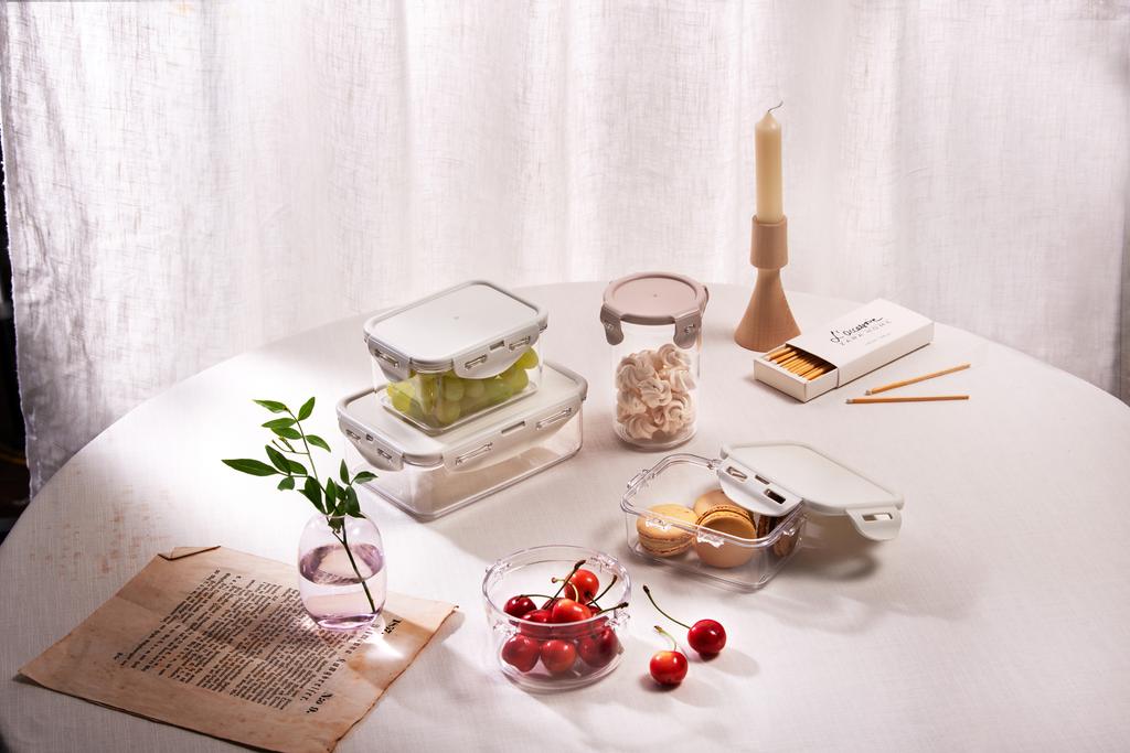 Dóza na potraviny LOCK Stackable 350 ml s bisfenolem A-Free Tritan ™, která je čirá jako sklo, je téměř nerozbitná, mohou ji bezpečně používat i děti. Je navržena pro stohování podle tvaru a velikosti produktu, což umožňuje uživatelům vrstvit a stohovat produkty se zapečetěným víkem a stále udržovat stabilitu. Její tepelná odolnost je dostatečně silná, aby mohla být použita v mikrovlnné troubě, ale né déle než 2 minuty. Může být dezinfikována ve vroucí vodě. Při dlouhodobém skladování potravin se silnou barvou nebo zápachem, jako je kari nebo fermentovaná zelenina, může dojít k zápachu nebo změně barvy.