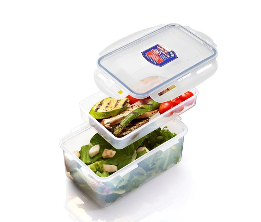 Dóza na potraviny - s přihrádkou uvnitř, díky ní lze oddělit potraviny. Dózy Lock & Lock jsou bezpečné a funkční nádoby vyrobené z kvalitního plastu, který je trvanlivý a odolává vysokým teplotám. Tyto dózy jsou 100% vzduchotěsné a tím zajišťují dlouhodobou čerstvost uchovávaných potravin a jsou vynikající také z hlediska uchování vůně (aroma). Čtyři pohyblivé "klipy" zajišťující víko jsou odolné proti opotřebení. Nádoby mají speciálně upravené vnější dno tak, aby se mohly bezpečně stavět na sebe a neklouzaly. Dózy Lock & Lock lze použít v chladničce, v mikrovlnce, v mrazáku i v myčce na nádobí. Dózy Lock & Lock prošly přísnými hygienickými zkouškami a odpovídají nejpřísnějším předpisům. Objem 1,4 l. Rozměry - 20,5 x 13,4 x 8,4 cm. Barva transparentní.
