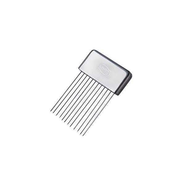 Držák na cibuli je vhodný pro rychlé a bezpečné nakrájení cibule, která pomocí hrotů neklouže a nerozpadá se. Vyrobený z kvalitní zdravotně nezávadně nerezové oceli. Není vhodný do myčky. Rozměry - 8 x 12 cm.