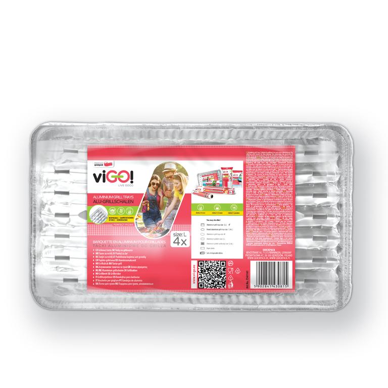 Tácky Quickpack jsou nezbytné při grilování. Díky použití grilovacího tácu bude Vaše grilování zdravější, bez připalování a odpadnou Vám starosti s čistěním roštu. Tácky nejsou vhodné pro kontakt s kyselými potravinami. Materiál - alobal. Balení 4 ks. Rozměry - 22 x 34 x 1,9 cm.