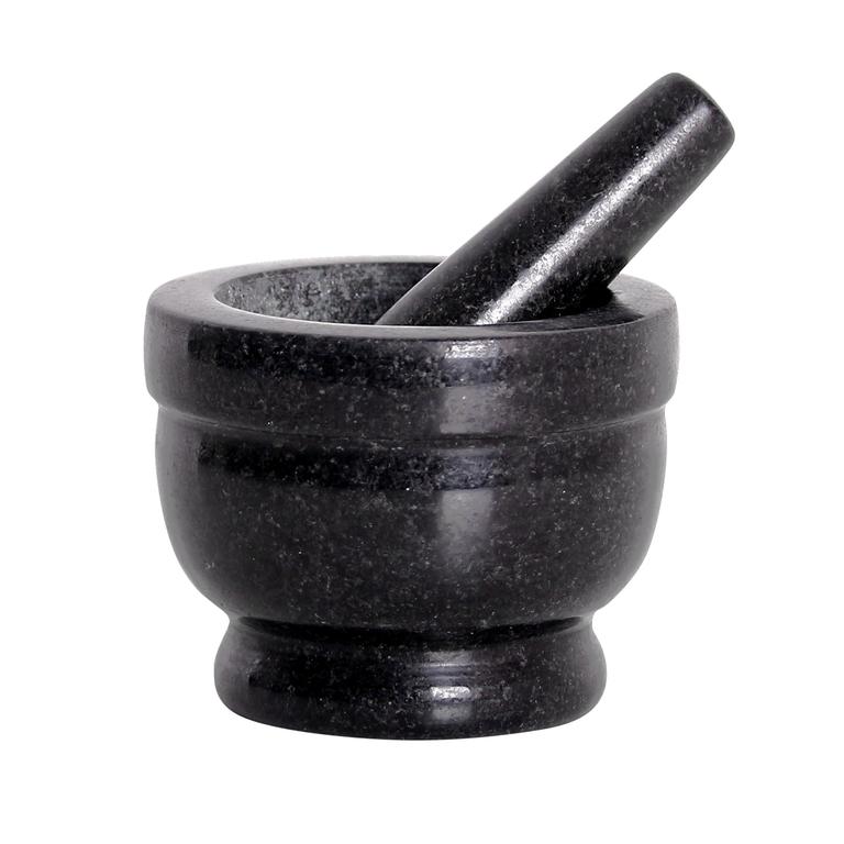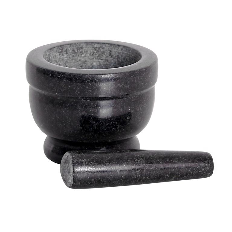 Originální hmoždíř je nezbytným nástrojem pro drcení bylin, koření a přísad orientální kuchyně. Je vhodný také na výrobu pesta. Materiál - žula. Rozměry - 11 x 8,5 cm. Barva černá.