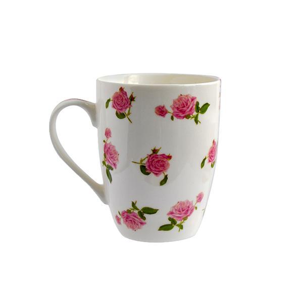 Hrnek z kvalitního porcelánu s růžovým dekorem růží. Lze použít do mikrovlnné trouby i do myčky na nádobí. Objem 340 ml. Rozměry - 8 x 10,3 cm. Assort motivů růží.