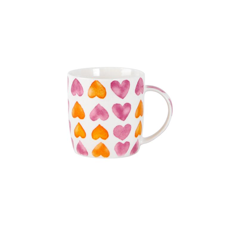Hrnek s velmi pěkným designem "Srdce". Vhodný na teplé nápoje, díky svému srdcovému designu též vhodný jako dárek. Hrnek lze použít do mikrovlnné trouby i myčky na nádobí. Objem 360 ml, rozměry - 8,6 x 7,3 x 9 cm. Assort.