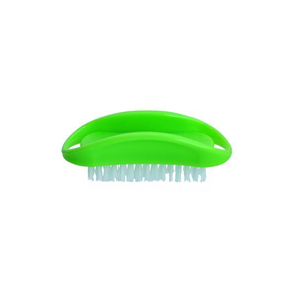 Plastový kartáček na čištění rukou po práci. Tělo kartáčku je plastové, syntetické štětiny. Anatomický tvar, dobře se drží v ruce.