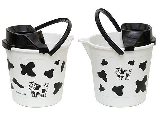 Kbelík kulatý 12 l se ždímadlem pro ždímání textilních mopů . Kbelík je potištěn vzorem "Kráva".