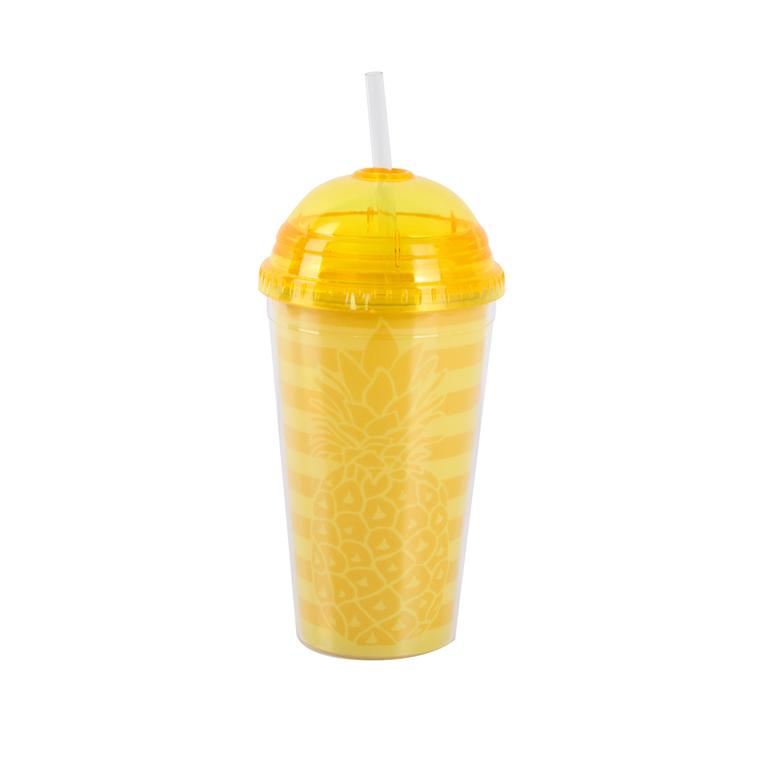 Dvouplášťový plastový kelímek na míchané drinky s víčkem a brčkem - hodí se jak na alkoholické nápoje, tak nealkoholické, s ovocem, ledem atd. Nesmí chybět na žádné párty. Zároveň tuto sklenici oceníte pro její praktičnost - víčko nejen eliminuje případné vytečení tekutiny, ale také v létě ochrání nápoj před vosami a jiným dotěrným hmyzem. Materiál - sklo, plastové víčko i brčko. Objem 500 ml.