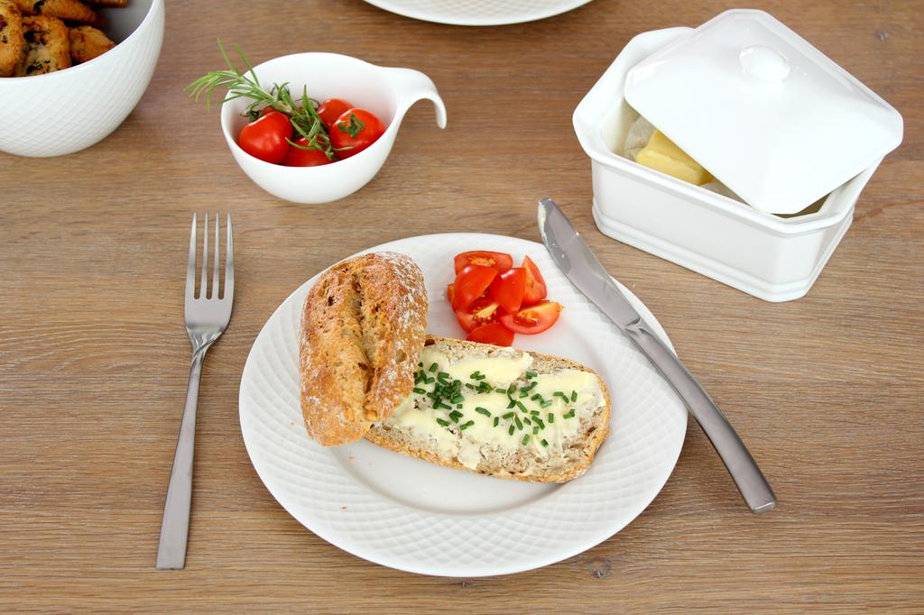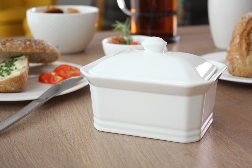 Keramická máslenka určená pro máslo 250 gramů o rozměrech 14 x 11 x 10 cm. Perfektní pro skladování v ledničce, je ideální pro servírování a skladování másla. Máslo se dá bez problémů krájet přímo na spodní části máslenky.
