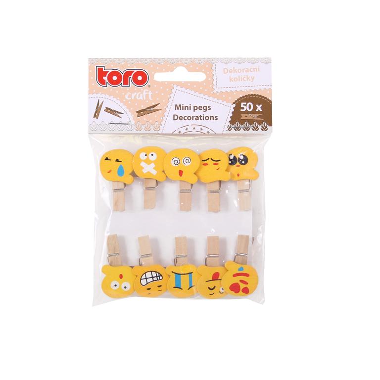 Dřevěné kolíčky dekorativní "Smajlík". Kolíčky dobře poslouží jako dekorace dárků, květinových ozdob, dopisů, jako držák upomínky nebo jen tak pro štěstí. Počet v balení - 10 ks. Výška kolíčků cca 3,5 cm. Barva žlutá+přírodní.