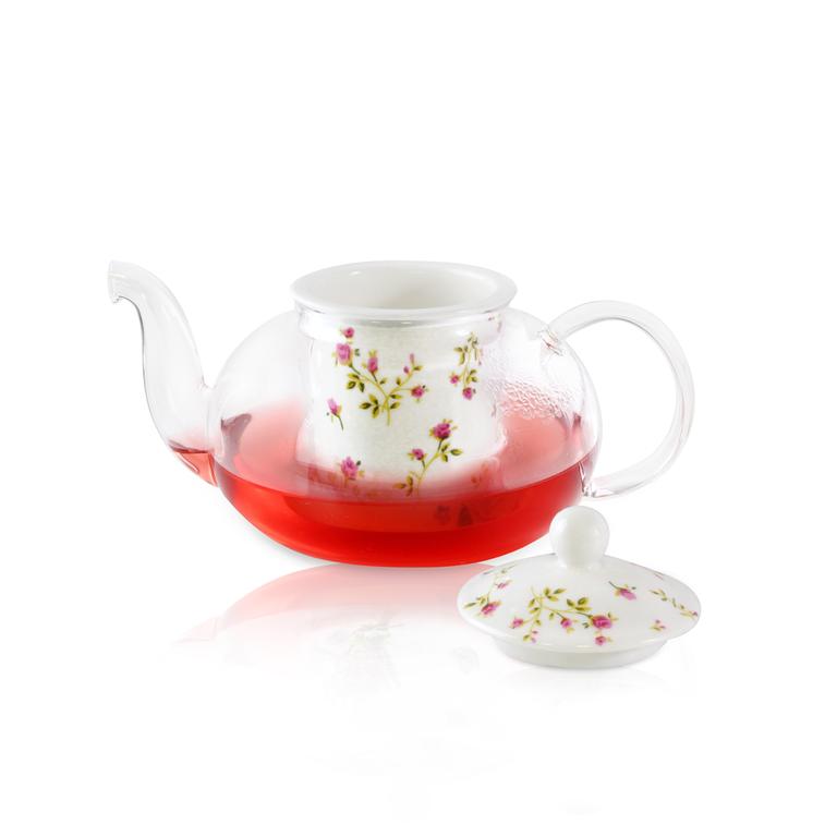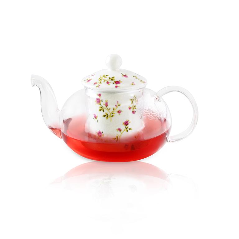 Čajová konvice v nadčasovém designu! Čajová konvice "růže" je vyrobena z borosilikátového skla, které je odolné vůči vysokým teplotám, proto se nemusíte bát, že by sklo prasklo při zalívání čaje vařící vodou. Konvice je lehká, přitom odolná a je dodávaná společně s keramickou pokličkou i sítkem na louhování čaje. Nadčasový celo skleněný design v kombinaci s keramickým víčkem a filtrem dodává konvici krásný vzhled, Hodící se do každé domácnosti. Objem konvice je 600 ml.