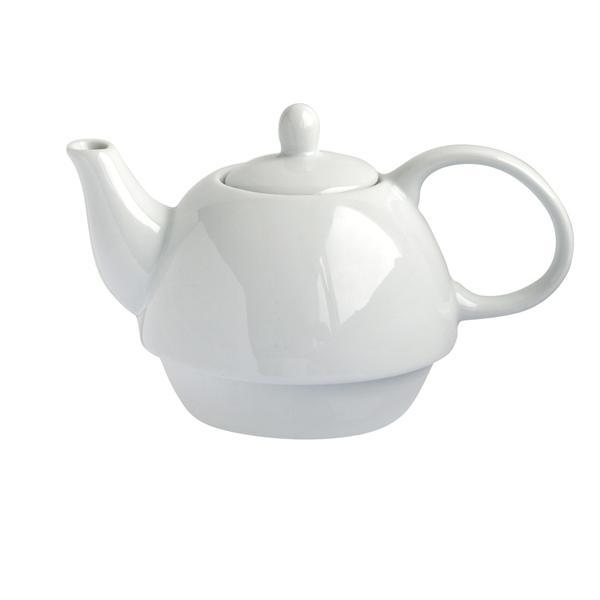 Porcelánová konvička na čaj a šálek - 2 v 1 k nalévání hotového čaje či jiného horkého nápoje. Konvička má objem 480 ml, šálek 320 ml. Barva bílá.
