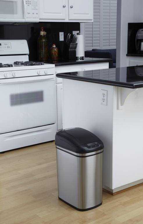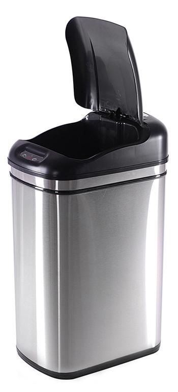 Oválný plastový odpadkový koš se senzorem a víkem, které lze otevírat automaticky nebo manuálně. Systém otvírání je založen na pohybovém senzoru s možností manuálního otevření pomocí tlačítek OPEN (otevřít ) a CLOSE (zavřít ). Snadná údržba materiálu. Moderní styl. Na typ baterie - 4 x velký monočlánek - nejsou součástí výrobku.