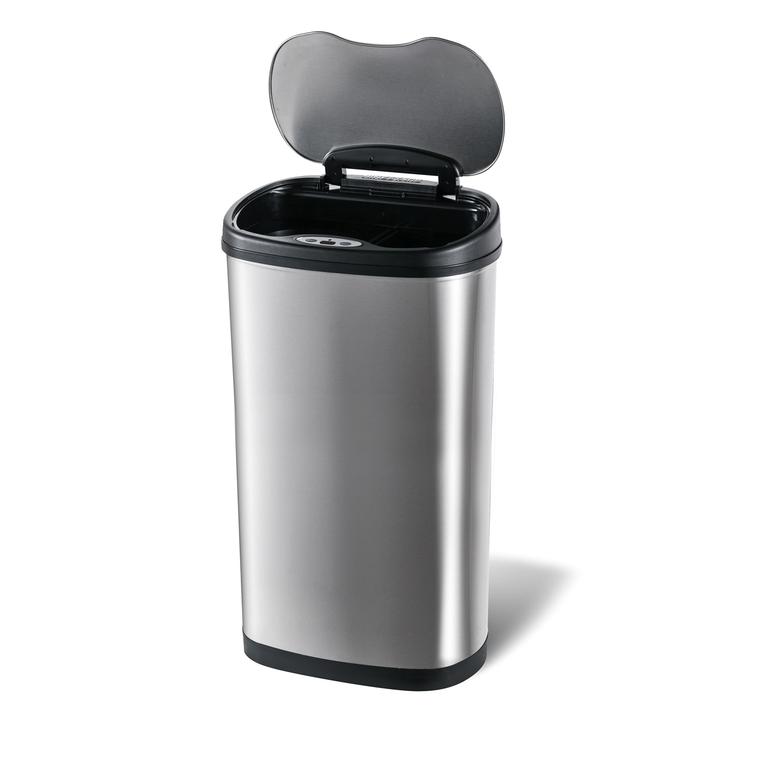 Odpadkový koš se senzorem se otevírá zcela automaticky, stačí se přiblížit k čidlu a koš se sám otevře. Jeho používání je tak zcela bezdotykové a hygienické, což oceníte hlavně v případech, kdy máte špinavé ruce a potřebujete něco vyhodit. Je vyroben z kvalitního nerezového materiálu. Koš má uvnitř dvě samostatné nádoby o objemu 28 a 22 litrů. Pohon koše je na 3 baterie C LR14 1,5V (baterie nejsou součástí balení), rozměry výška zavřeného koše 67,7cm, koše s otevřeným víkem 91cm, hloubka těla koše 25,4cm, hloubka víka 29,3cm, šířka těla koše 38,2cm, šířka víka 41,5cm. Koš NEMÁ samostatně vyndavatelné nádoby .
