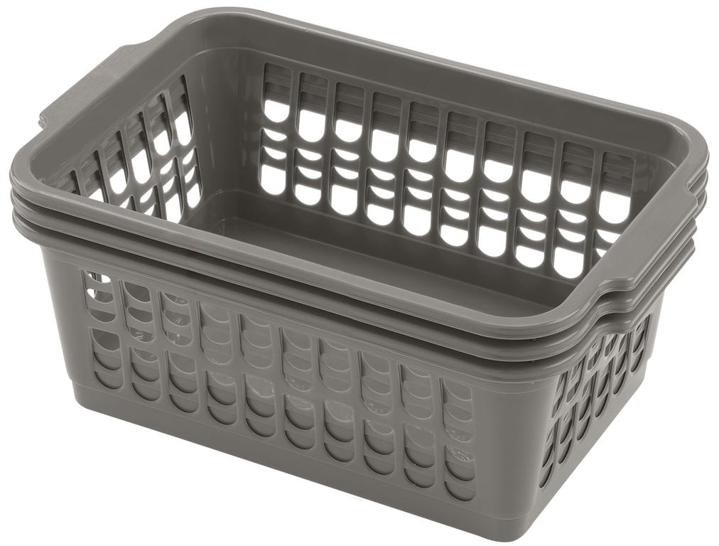 Plastový košíček je univerzální pomocník v domácnosti. Velmi pěkný designový a lehký košík je možné využít pro úschovu věcí v domácnostech nebo přenášení a odložení věcí dle rozměru výrobku. Košíček je velmi lehce omyvatelný od nečistot. Balení - 3 ks, rozměr 30 x 19,5 x 13 cm.