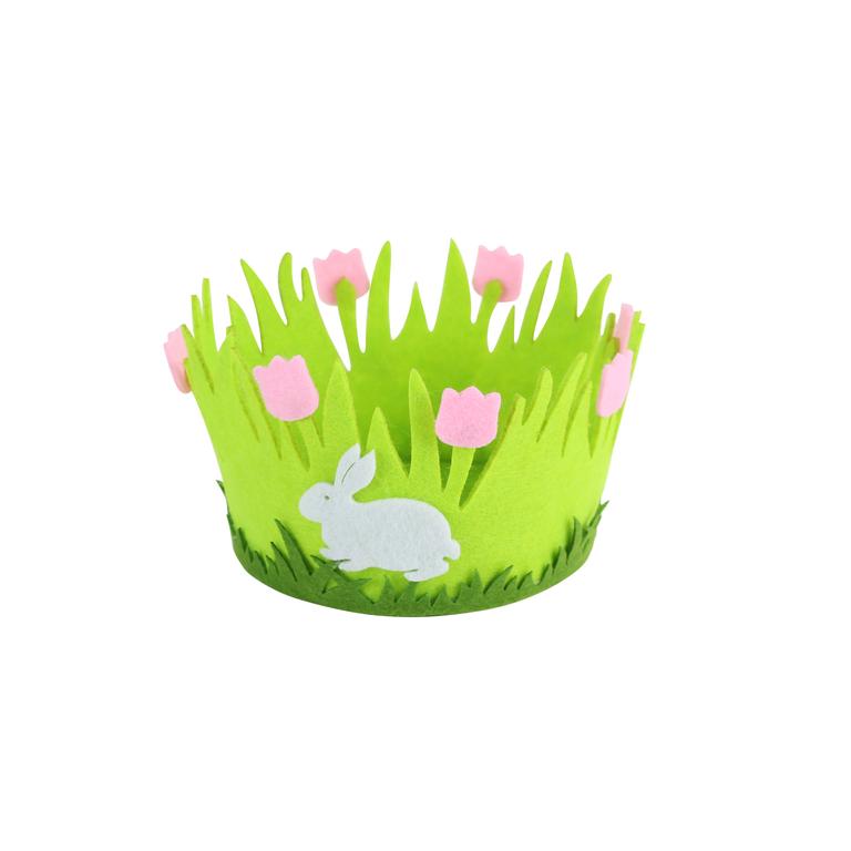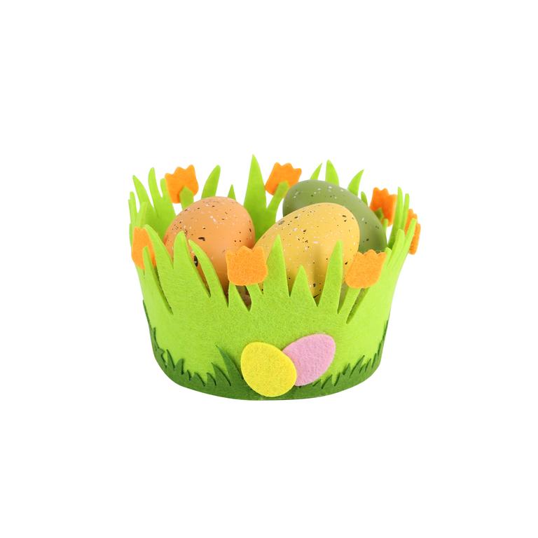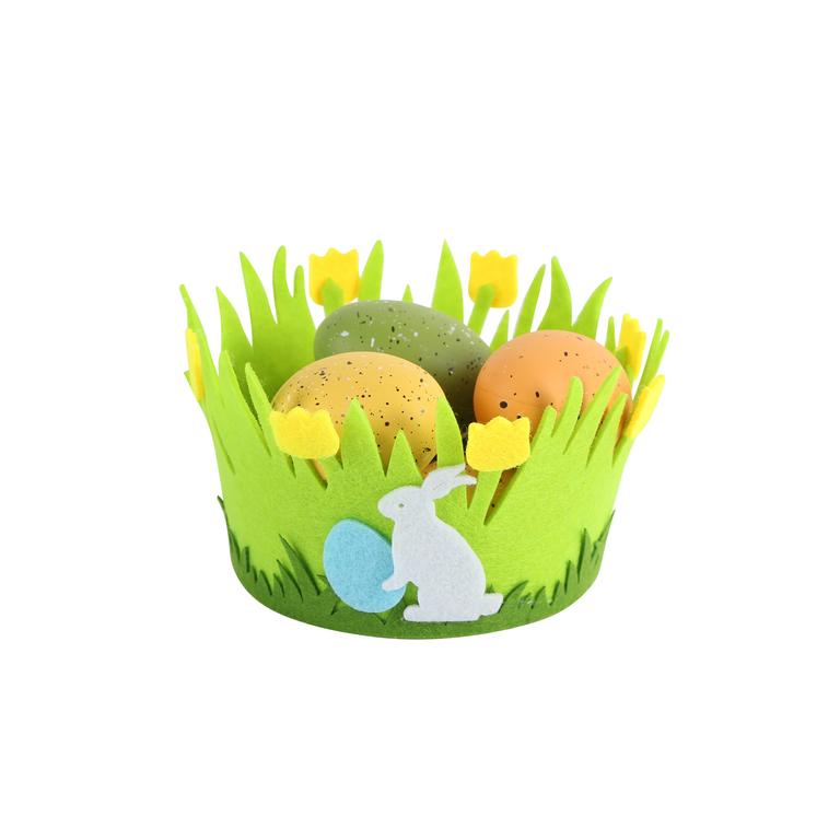 Plstěný košík s velikonočním motivem je vhodný k výzdobě Vašeho domova o Velikonocích. Do košíčku lze vložit vajíčka, umělá kuřátka či jiné velikonoční motivy a dekorace. Různé motivy, rozměr 14 x 8 cm.