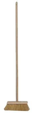 Úklidové koště s dřevěnou násadou. Koště má hnědý vlas. Je vhodné na běžné zametání v domácnosti nebo pracovních prostorách. Délka násady je 135 cm, šířka 25 cm a hloubka 5,5 cm.