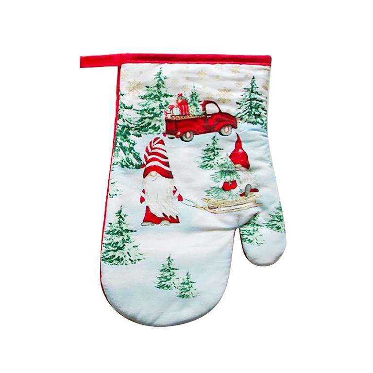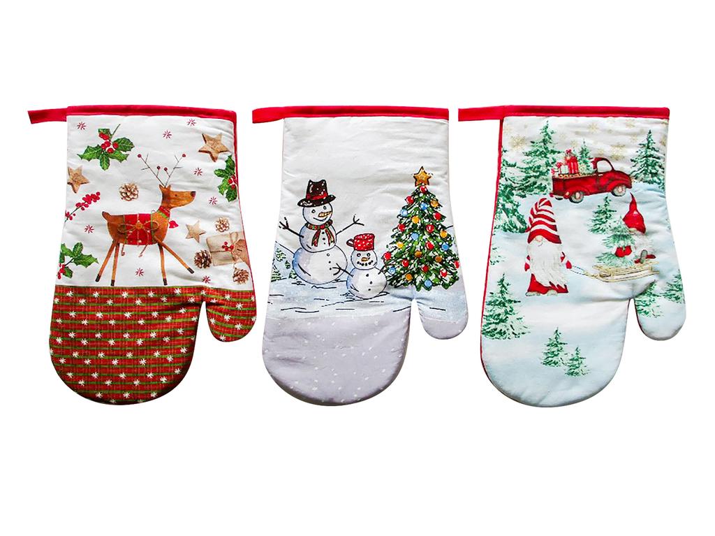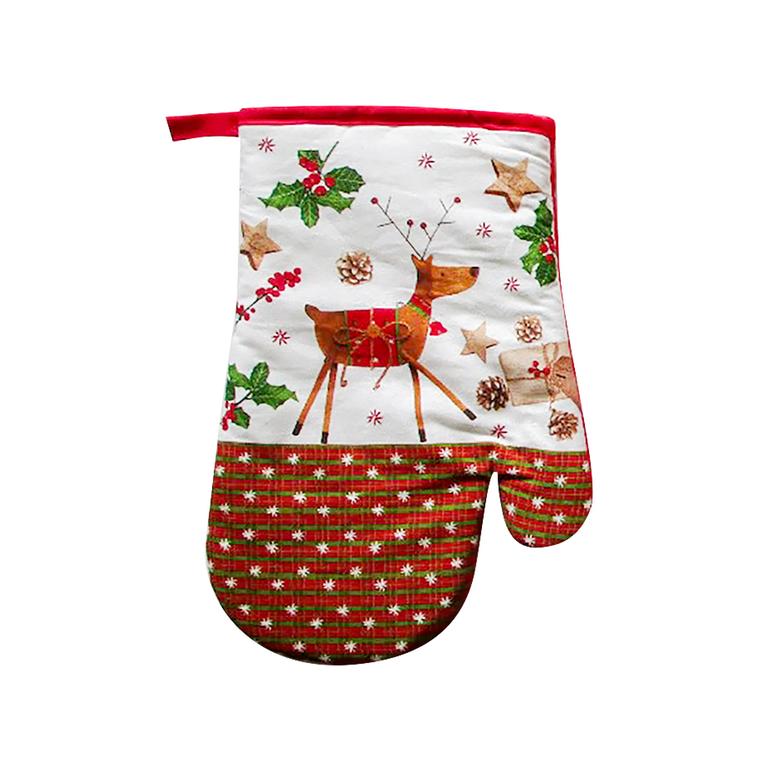 Kuchyňská chňapka tvar rukavice s vánočními motivy je nejen praktickým pomocníkem ve Vaší kuchyni, ale i vhodným módním doplňkem. Chňapka je vhodná pro chycení a přenášení horkých nádob nebo pečících plechů z rozpálené trouby nebo na zvedání rozpálené pokličky. Materiál - povrch - 100%bavlna, výplň - 65% bavlna, 35% polyester. Očko na zavěšení. Rozměry - 16,5 x 26,5 cm. Assort - různé motivy vánočních dekorů.
