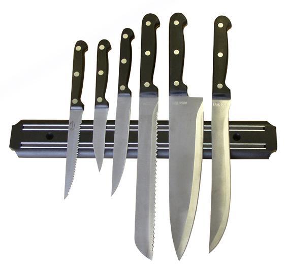 Magnetická lišta na nože, vyrobena z tvrdého černého plastu polypropylenu, ve které jsou vodorovně zabudované nerezové lišty s magnetem, délka 33 cm, slouží ke snadnému a praktickému umístění nožů ve Vaší kuchyni, jsou vždy po ruce, netupí se a jsou bezpečné uložené. Materiál na uchycení není součástí balení. Velikost - 33 x 3 cm.