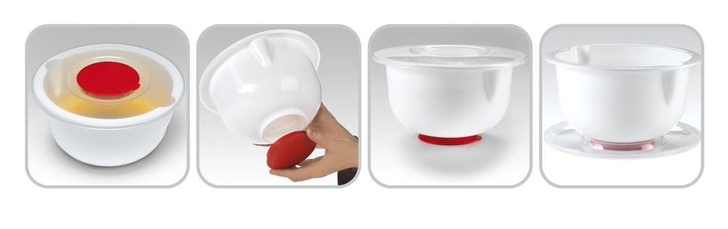 Šlehací mísa s krytem ochrání Vaši kuchyň před znečištěním při přípravě různých krémů, těst atd. Tato mísa Vám ulehčí práci při vaření. Unikátně řešené víko, které můžete otevřít dvěma způsoby - celé víko nebo pouze jeho červenou vnitřní část, kterou pak můžete použít na dno mísy, aby Vám při šlehání neklouzala. Průměr 24 cm, výška 13,5 cm.
