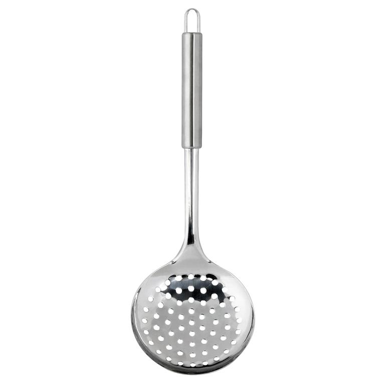 Naběračka děrovaná neboli pěnovačka z lesklé nerez oceli, délka 34 cm, s otvorem pro zavěšení, slouží k vytahování knedlíků při vaření. Vhodná do myčky na nádobí. Rozměry - 34 x 11,3 x 5,8 cm. Barva - stříbrná.