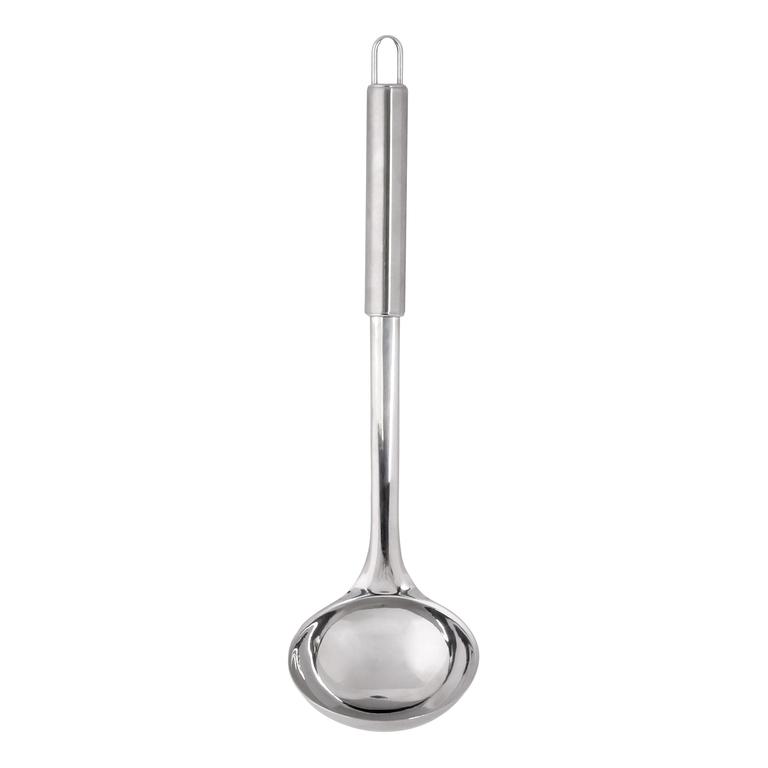 Naběračka na polévku 30 cm, vyrobena z lesklé nerez ocel, opatřená otvorem pro zavěšení, vhodná do myčky na nádobí. Rozměry - 30 x 8,6 x 7,5 cm. Barva stříbrná.