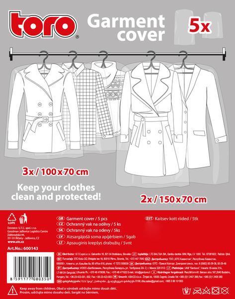 Jednorázový ochranný vak na oděv chrání Vaše oděvy před zašpiněním a zaprášením. Balení obsahuje 5 ks - 3 ks - rozměry 100 x 70 cm, 2 ks - 150 x 70 cm. Barva transparentní.