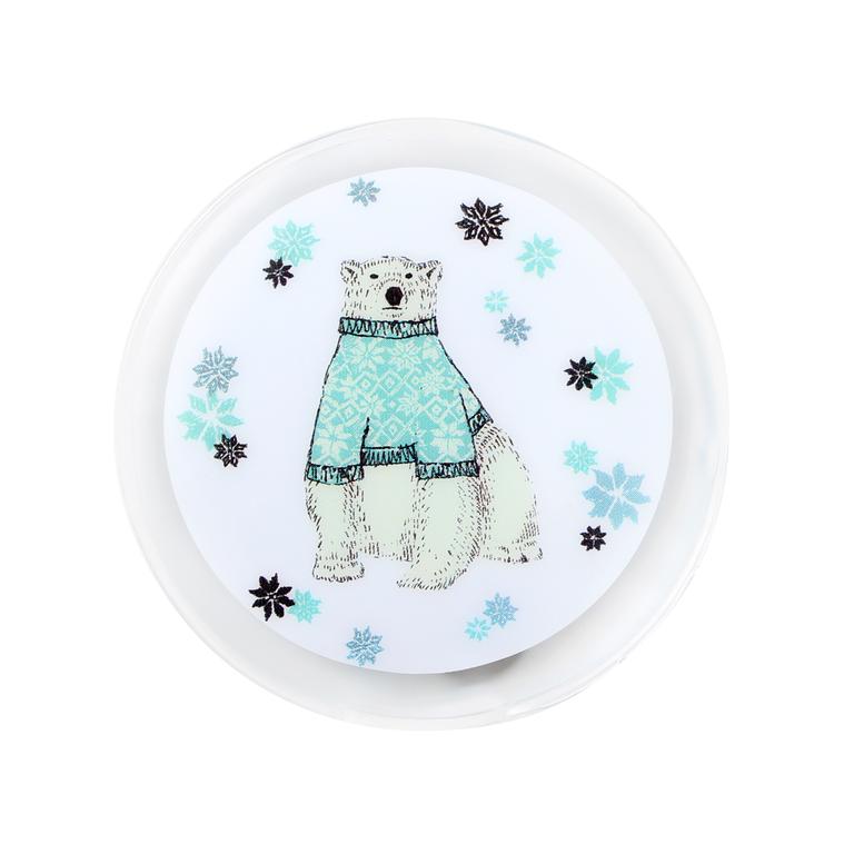 Ohřívač rukou s vánočním obrázkem. Ohřívač má v sobě tekutý gel a aktivační plíšek. Jakmile zlomíte plíšek, vyvolá se chemická reakce, na základě které gel zkrystalizuje a začne hřát. Abyste mohli ohřívač rukou znovu použít, musíte ho po vychladnutí povařit ve vařící vodě, tímto se krystaly gelu rozpustí a lze jej znovu použít.