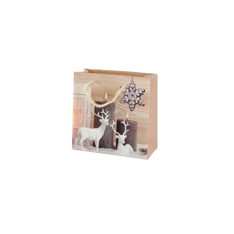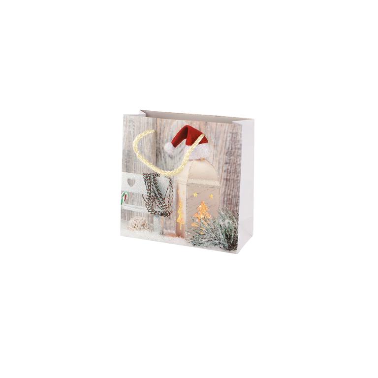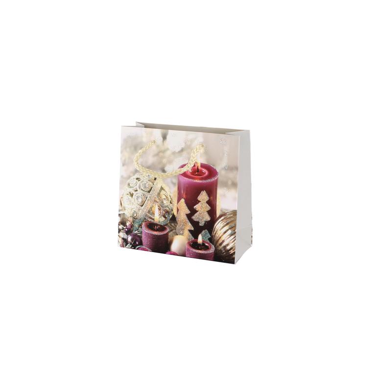 Dárková papírová taška s vánočními motivy. Rozměry - 15 x 14,5 x 6 cm, assort různých vánočních motivů.