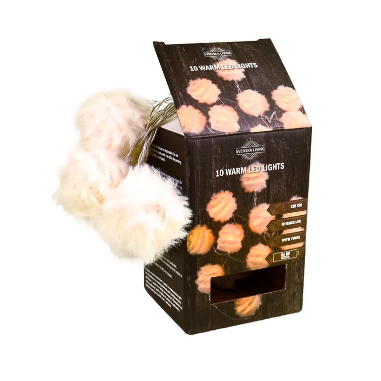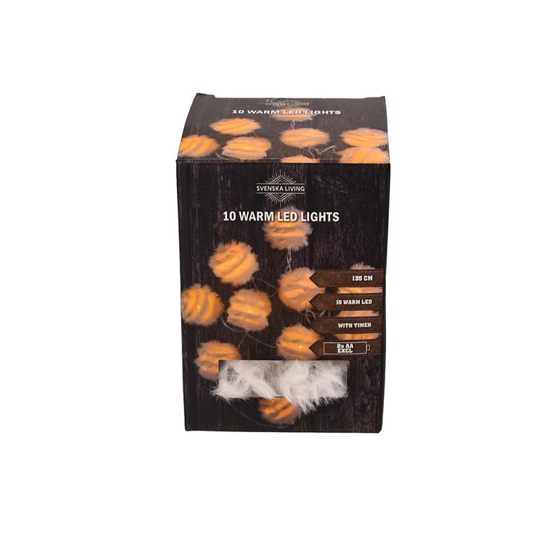 Vánoční světelný řetěz 10 LED koule pírka s časovačem 1,35 m, teplé světlo.