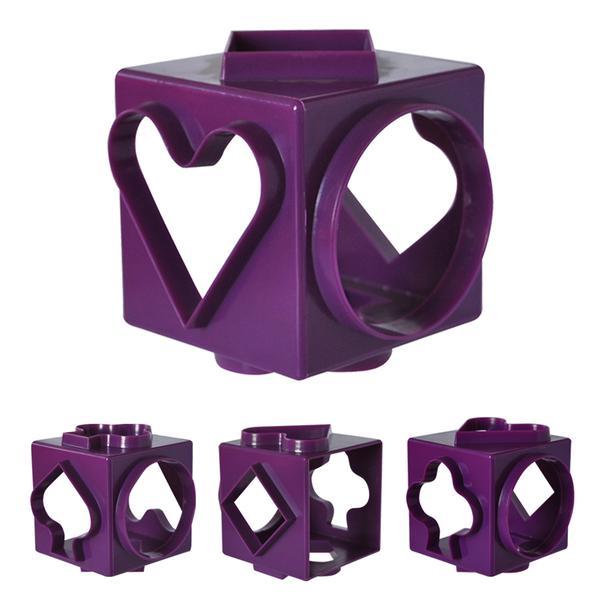 Plastová vykrajovátka na cukroví ve tvaru krychle, kde každou stranou jednoduše vykrojíte jiný tvar - kruh, čtverec, kosočverec, srdce, 2 různé tvary stromu. Rozměry - 7,5 x 7,5 x 7,5 cm