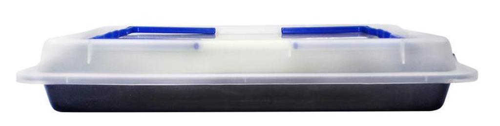 Pekáč Toro s kvalitním nepřilnavým povrchem. Vhodný pro přípravu koláčů, cukroví, zeleniny i masa. Plastový poklop Vám upečené dobroty uchrání a díky praktickému uchu snadno přenesete. Plastový poklop se nesmí dát do vyhřáté trouby. Snadná držba plechu - lze mýt v myčce. Rozměry pekáče: 42 x 29 x 3,8cm.