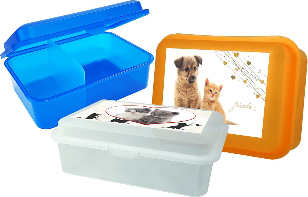 Plastový svačinový box s přepážkou MIX mazlíčci 18x13x7cm