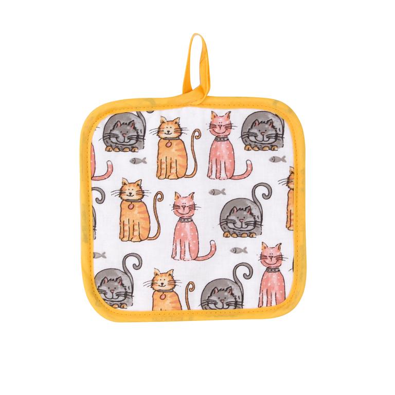 Podložka pod hrnec - čtverec s krásným motivem "Kočka" nebo "Pes". Je vhodná k přenášení horkého nádobí, jako podložka pod horké hrnce nebo ke zvedání horké pokličky. Rozměry 17 x 17 cm. Materiál-povrch : přední strana - 100% bavlna, zadní strana:100% polyester, výplň: 65% bavlna, 35% polyester. Assort - kočka nebo pes.