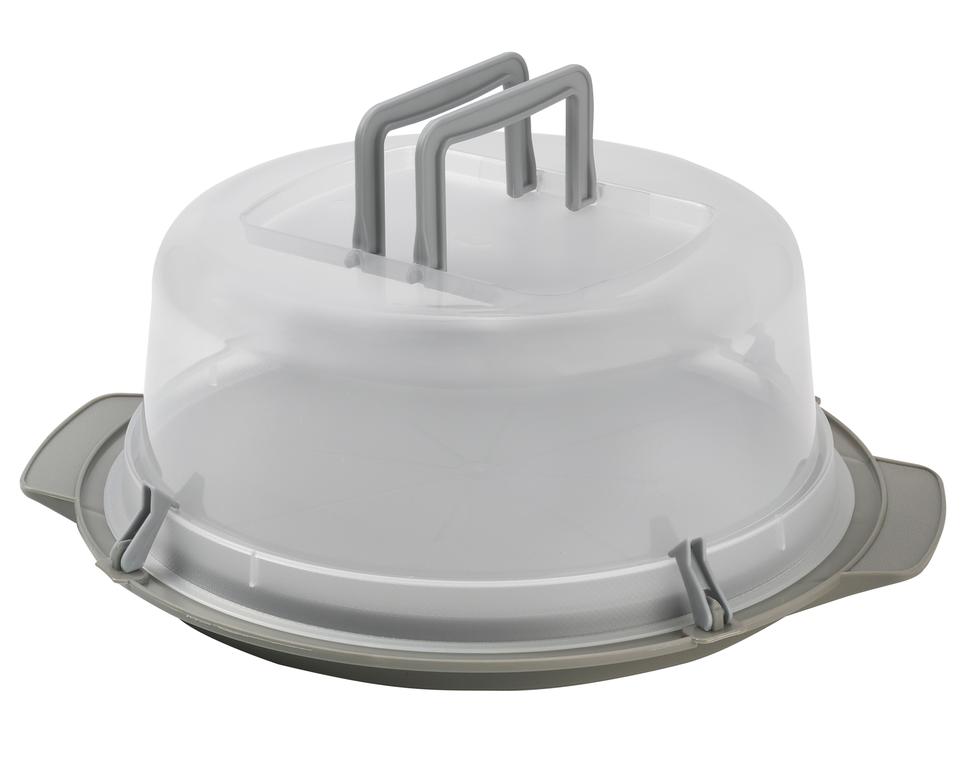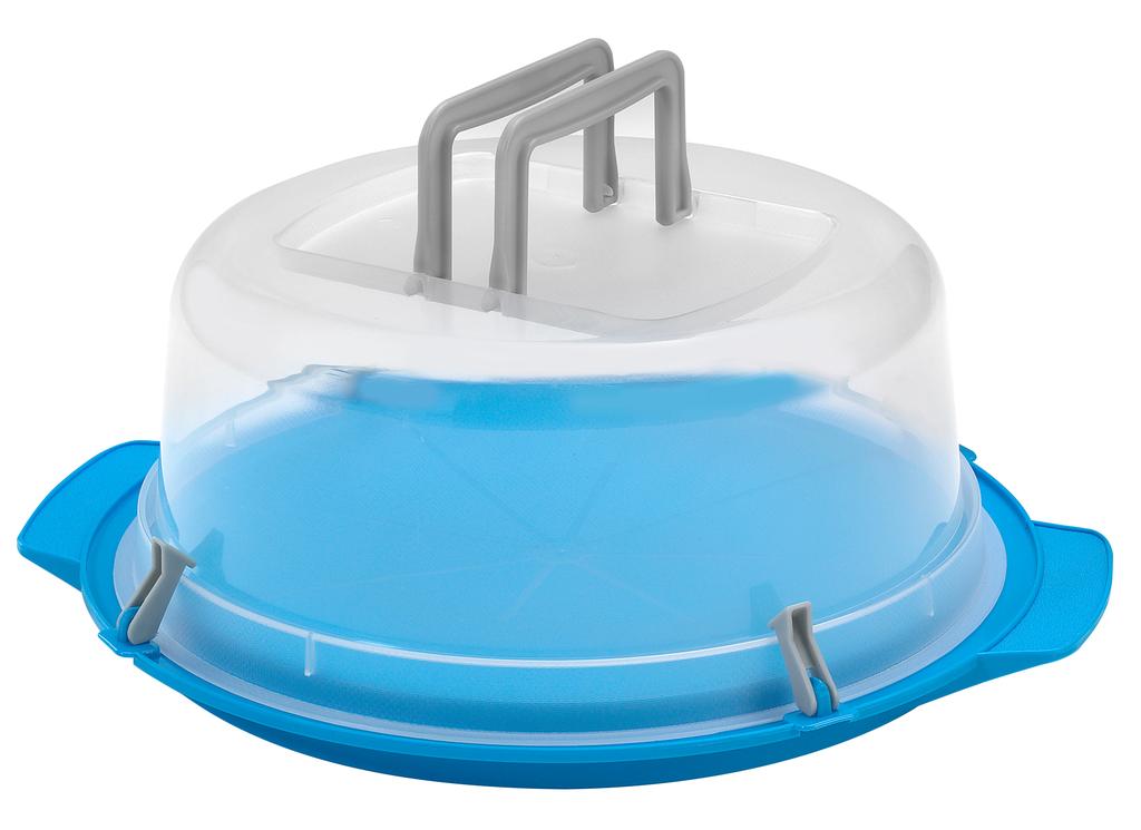 Kulatý plastový podnos s poklopem, ve kterém uskladníte a přepravíte dort či koláč je skvělým pomocníkem ve Vaší kuchyni. Praktická ucha umožňují snadý přenos podnosu. Velikost podnosu 40 x 35 x 15 cm.