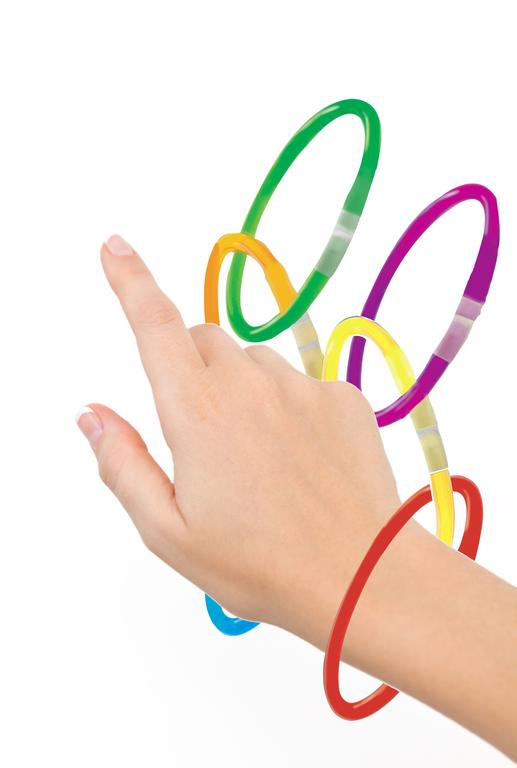 Svítící náramky na každou párty. Náramek má průměr 5mm a délku 200mm. Po jeho ohnutí dojde ke spojení látek uvnitř a náramek několik hodin svítí. Jakmile dojde k vyčerpání obsahu, náramek přestane svítit a znovu už se použít nedá. Ke spojení jsou v balení také spojky ke každému náramku. Nevhodné pro děti do 3 let. Balení 15 ks.