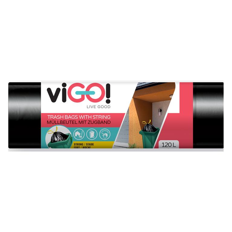 Igelitové pytle do odpadkových košů umožňují v dnešní době snadné odnášení odpadků do popelnic. Vysoce odolné neprůsvitné pytle lze umístit na jakýkoli odpadkový koš v případě dobrého zvolení velikosti pytle. V případě zatahovacích pytlů je velmi snadné také zavázání koše proti vysypání odpadu pouhým utažením zatahovací šňůry. Barva černá. Počet v balení - 10 ks. Objem 120 l. Rozměr pytle - 67 x 100 cm.