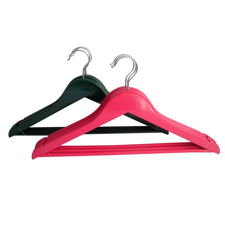 Barevné dřevěné šatní ramínko - sada 3 ks. Je vynikajícím pomocníkem při skladování oblečení ve skříních a šatnách všech domácností, ramínka jsou vybavena kovovým otočným háčkem. Rozměry - 44,5 x 23 cm. Assort barev.