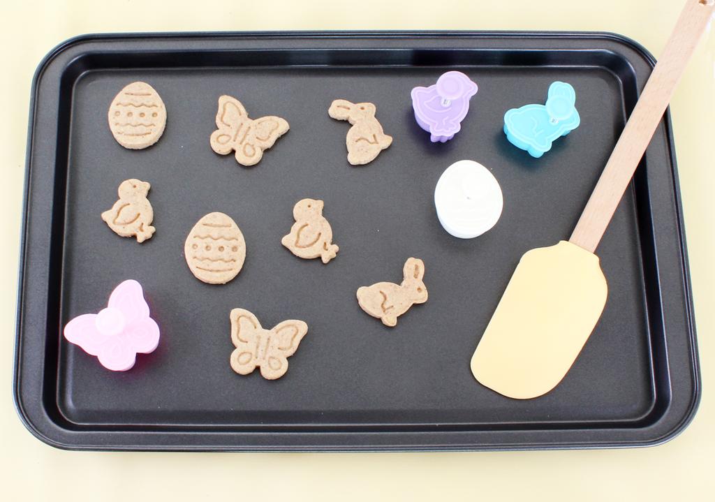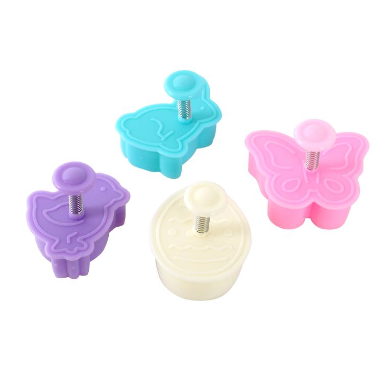 Razítka na cukroví s velikonočními motivy. Materiál - plast. Jednoduše vytisknete velikonoční razítko do těsta při pečení cukroví. Balení obsahuje 4 ks různých motivů - zajíček, kuřátko, vajíčko a motýlek. Rozměry - 5 x 6 cm.