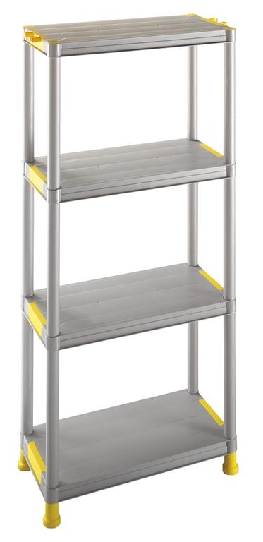 Praktický regál do garáže či zahradního domku, má úchyty v horní části regálu, díky kterým můžete spojit více kusů k sobě. Je vyroben z pevného plastu, takže odolá i tam, kde by dřevo zplesnivělo. Rozměr 60 x 30 x 133 cm, 4 patra.