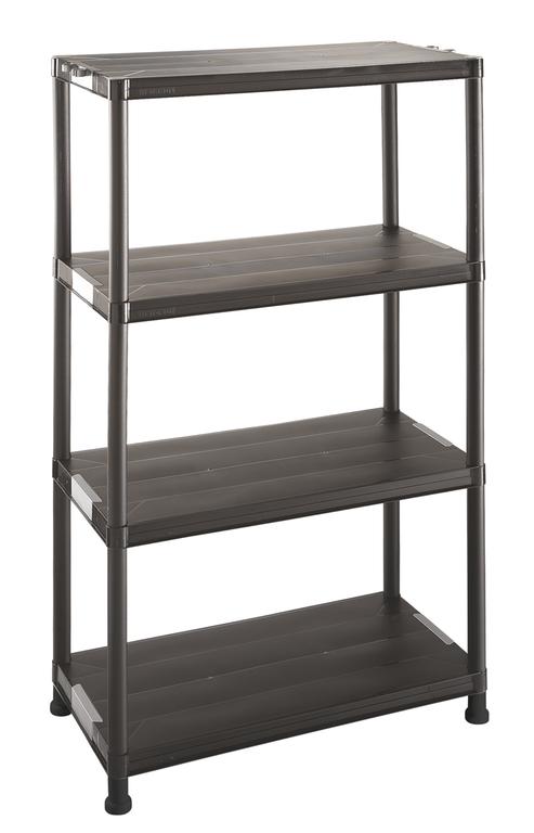 Praktický regál do garáže či zahradního domku, má úchyty v horní části regálu, díky kterým můžete spojit více kusů k sobě. Je vyroben z pevného plastu, takže odolá i tam, kde by dřevo zplesnivělo. Rozměr 80 x 40 x 133 cm, 4 patra.