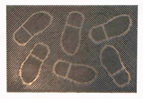 Gumová rohožka s jemnými hroty. Praktická rohožka před dveře na čištění obuvi. Stabilní gumová rohožka s hroty při čištění obuvi po podlaze neklouže. Jednoduché čištění. Černá barva s motivem stopy. Rozměry rohožky 40 x 60cm.